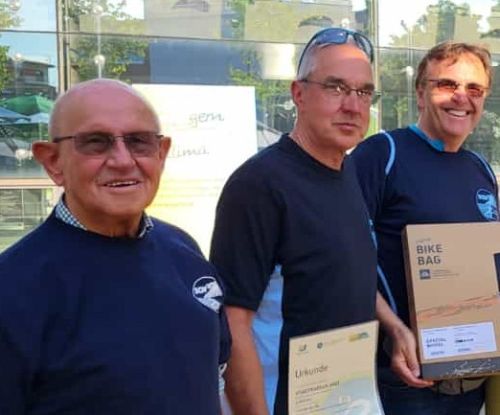 In 2023 haben 26 Teilnehmer für den Ski- und Sportclub Wellinghofen beim Stadtradeln vom 7. bis 27. Mai teilgenommen und sind dabei 10.398 km von insgesamt 1.114.636 km gefahren. Dies war für den SCW der 19. Platz (im Vorjahr Platz 44) in Dortmund. Der älteste Teilnehmer vom SCW, Josef Meyer (links im Bild), ist mit 91 Jahre knapp 400 km gefahren. Der SCW hatte 16 sehr aktive Gastmitfahrer. Gerd Koch (in der Mitte) hat mit 3.333 km die meisten Kilometer gefahren und ist mit einer Urkunde und einer Fahrradtasche vom Stadtradeln ausgezeichnet worden. Dadurch ist der SCW 20 Plätze in der Gesamtwertung nach oben gekommen. Gerd Koch ist mittlerweile schon ein alter Bekannter beim Dortmunder Stadtradeln. In 2019, 2020 und 2022 ist er bereits an die Spitze gestürmt. Auch in diesem Jahr hat er zwischen dem 7. und 27. Mai überwiegend auf seinem Rennrad gesessen. Der letzte Kick, den Radsport in den drei Wochen Stadtradeln wieder so herrlich zu übertreiben und eskalieren zu lassen, fand sich in seiner wöchentlichen Walkinggruppe. „Meine Sportkollegen vom SCW wollten beim Stadtradeln gern möglichst über 10.000 Kilometer in der Gruppe schaffen und hatten mich gefragt“, erklärte Gerd Koch seine erneute Motivation, als bester Radler aus dem Wettbewerb zu gehen. Zur Preisverleihung begleitete ihn sein Teamkollege Josef Meyer, der aller Wahrscheinlichkeit nach ebenfalls einen Rekord beim Stadtradeln 2023 aufgestellt haben dürfte: Mit 387 Kilometern ist der 91-Jährige der vermutlich älteste Teilnehmer und der lebende Beweis, dass Radfahren gut für die Gesundheit ist. Rechts im Bild ist Thilo Weiß, Sportwart des SCW. Der nächste Veranstaltungstermin Stadtradeln 2024 findet vom Sonntag 5. bis zum Samstag 25. Mai statt. Anmeldungen sind ab April kommenden Jahres möglich.